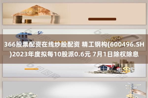 366股票配资在线炒股配资 精工钢构(600496.SH)2023年度拟每10股派0.6元 7月1日除权除息